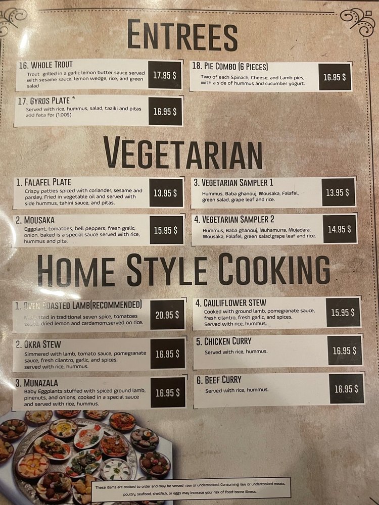 A flavorful vegetarian favorite mix of chickpeas, onions, parsley, garlic and special spices, shaped into balls and deep fried. Served with rice, salad, hummus and fresh pita bread.